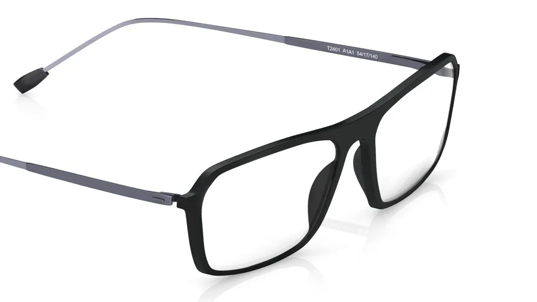 Black Square Rimmed Eyeglasses from Titan Eye+. These are compatible with Blue filter, Single vision & Progressive Lenses. (T2401A1A1)