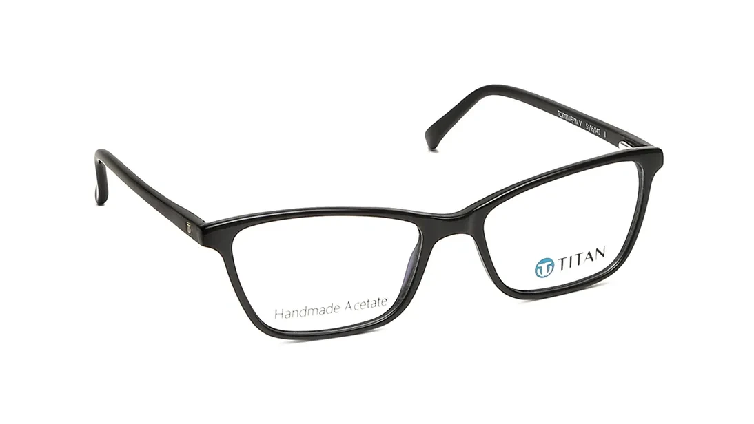 Black Cat Eye Rimmed Eyeglasses from Titan Eye+. These are compatible with Blue filter, Single vision & Progressive Lenses. (TC1018WFP1M)