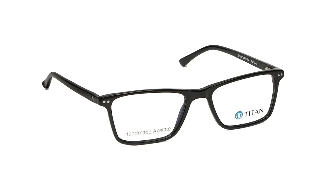 Black Rectangle Rimmed Eyeglasses from Titan Eye+. These are compatible with Blue filter, Single vision & Progressive Lenses. (TC1023MFP2S)